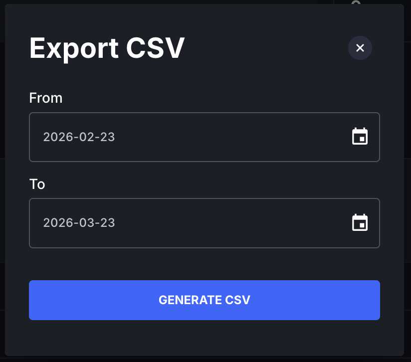 In both Trade History and P\&L History, we've also added the ability to further refine your export, by generating a CSV between 2 specific dates.