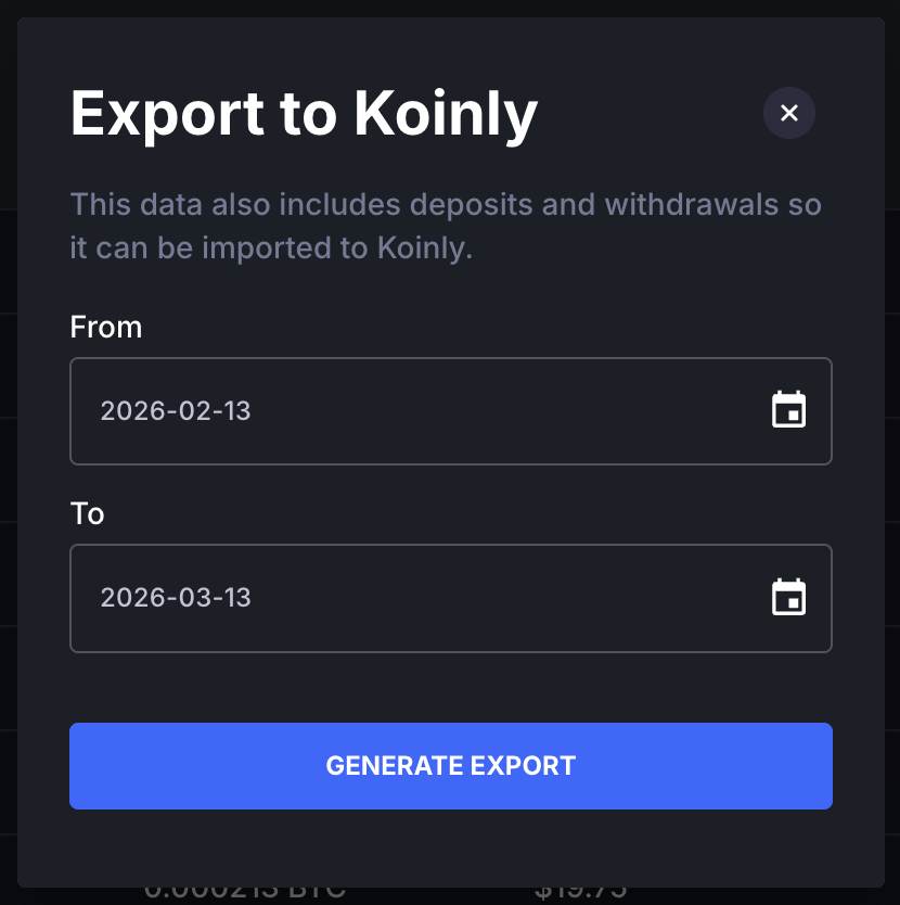 Note that the Export to Koinly function also includes deposits and withdrawals, while the Export to CSV does not.